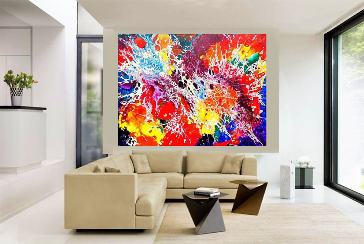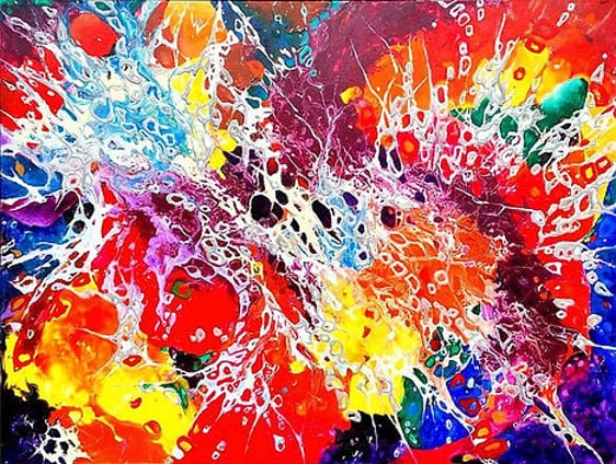 This unique artwork embodies philosophy of finding beauty in imperfection, and heal through art, inspired by traditional Japanese practice of Kintsugi – mending of broken pottery with golden thread. “Creating Harmony” employs abstract forms, an entire spectrum of healing colors, multi-layered surfaces, sacred geometry, gold-accented fissures to mimic the Kintsugi technique, to transform perceived imperfections into beauty, meaning, and harmony.